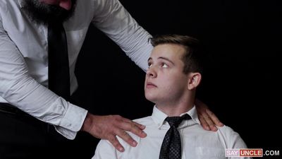 Hairy and submissive twink gets his tight asshole sucked by a DILF