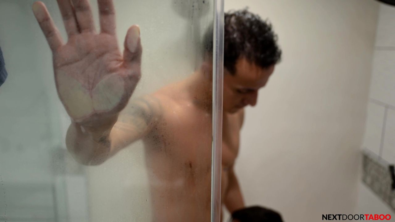 Des Irez is going to hop in the shower but stepbro River Castillo needs him to hurry up so he can shower! He doesn't have time so he joins him!