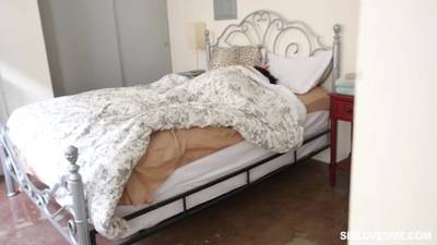 A slut who gets bent over in bed for a good fucking and she makes the most of her mans cock in this exciting scene