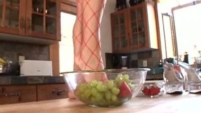 This pornstar is wearing her body stocking as she knows it excites her man and he loves to lick and caress her feet too