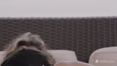 Blonde and brunette exchange roles in threesome
