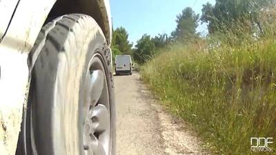This is an amazing video featuring this good looking woman with her huge tits, watch them bounce while the car goes
