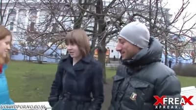 A guy standing in the center of the park when they came and asks him of he wants to fuck an amazing blonde teen