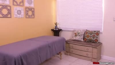 After bringing him to the massage table and saying what he should do and she left and when he fell asleep she came back and fiind him up