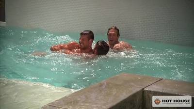 Three gay friends enjoy the sunshine with bjs