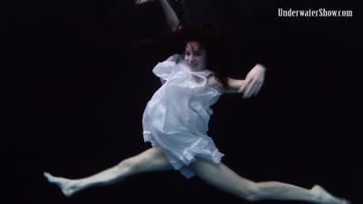 Young brunette making an underwater show