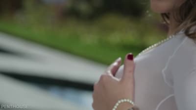 Dani strips off her swimsuit to show off a perfect body. Then she comes inside for sex on the sofa with a young buck, who blows on her hairy pussy