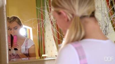 What cute little teen, she is having her quality time masturbating on the couch with her sex toys solo