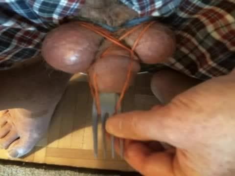 This guy likes to stuff all sorts of things into his bellend. Today we see him with a fork amongst other things!