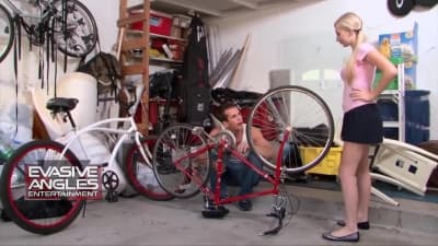 This young girl is wants her bike fixed but she also wants to have sex with the man who fixes the bike to fix her pussy as well