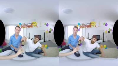 Two handsome guys for one chick. What a dream! The guys are going to give her a cunnilingus before sliding their cocks in her little pussy.