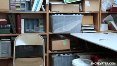 This employee was caught stealing so as a punishment she gets to fuck this old dudes hard cock and has to make him cum