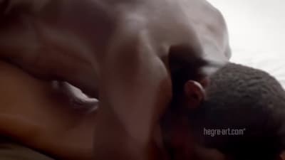 Hot smooth fucking fullHD with a big black dick, fucking her hard on the bed while she hiding her eyes