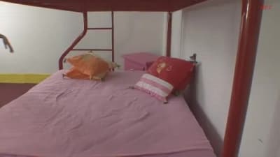 This young babysitter became horny and went to a bed to masturbate alone but then gets caught and fucked hard
