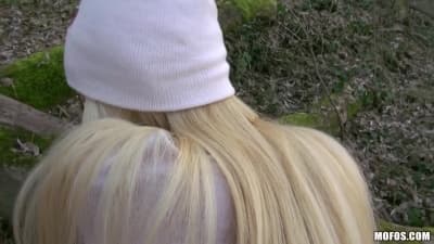 Picked that slut and fucked her in the woods, hot sexy blonde fucked hard in the forest and cum at her stomach
