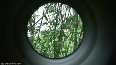 They are fucking in the middle of a field and they have no idea that they are being spied on as they get more and more excited