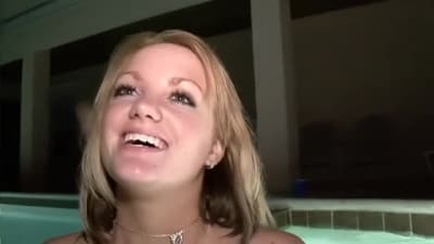 This chubby blonde is fingering herself and feeling horny after she's had some fun in the hot tub