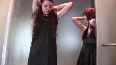Petite teen taking a sexy shower together and touch each others pussy and little tits, what an amazing duo!