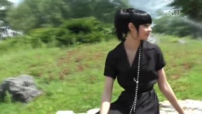 This young brunette loves to be out in public places where she shows off her sexy body that excites her a lot