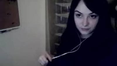Cute brunette has a big pair of natural tits and she spends a lot of time caressing them in this webcam video