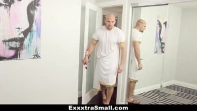 Today, this brunette offers a nice fellatio to her boyfriend disguised as Cupid. He has a very big dick and is going to put it hard in her pussy!