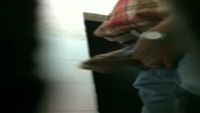 These two old men get horny in the bathroom and they enjoy watching each other as their dicks get harder
