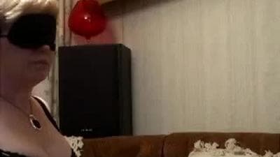Blindfolded blonde enjoys all of his dick in her mouth as she's wearing a blindfold and then gets fucked hard