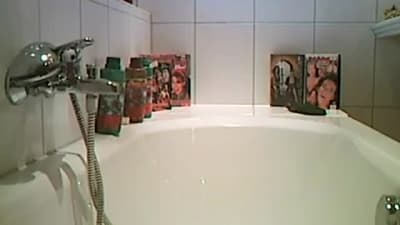 In this video we see a chubby gay guy covering himself in green paint and then masturbating in the bath