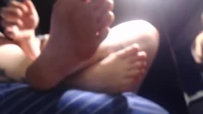 This operated transgender starts to massage her feet with cream. She has a sex toy in her pussy to give her pleasure.