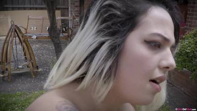 A blonde with big tits is excited. She uses the garden to masturbate herself, deeply with sex toys, because she wants an orgasm.