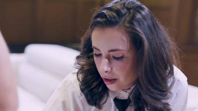 Beautiful nerd brunette came to help the students study for their exam not knowing they are one creepy family who will seduce her for sex