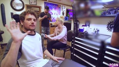 After they got tattoos they got turned on calling their friend to come over and start having fun on the couch and getting wet and horny