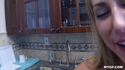 He saw doing laundry but all he can think off is her tight butt making him hard so he made her get on her knees and suck it