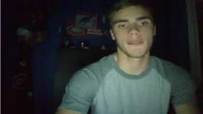 This sexy young guy is making himself feel pleasure as he teases us in front of the camera and shows off his huge dick
