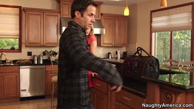 Sexy pornstarr fucked real hard in the kitchen, started by sucking his dick and then she got fucked in different positions