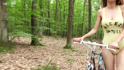 She enjoyed a nice trip on bike but she couldn't hold herself anymore after being horny because of the bicycle ride
