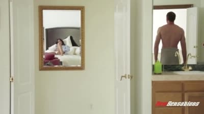 She put on her boyfriend's shirt and waited for him with her pussy being fingered and wet ready to be penetrated by his hard dick