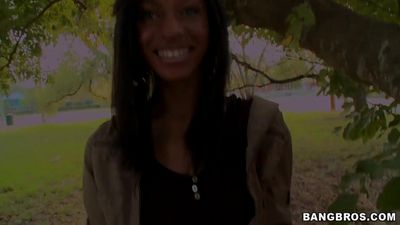 Slut black teen sucking a white guys cock out in the woods then coming back home for more dirty foreplay and have amazing sex