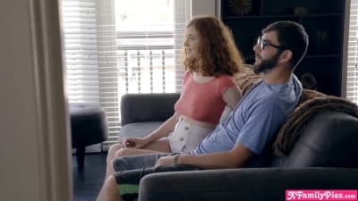 Natural stepsister teen Abby Rains cant get enough of bros huge cock and they keep fooling around but their other step sister is about to catch them