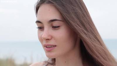 A slim and delicate brunette with small tits, is alone on a deserted beach and decides to show us, her naked body.