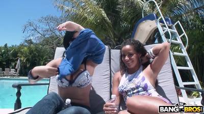 This man s very comfortable on his deckchair with these two naughty girls, who come to suck his cock and ride his cock, as it should be.