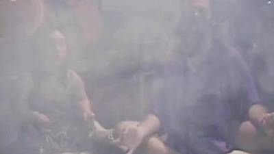 This midget woman is being fucked by this old dude who fills her with his dick and cums all over her face