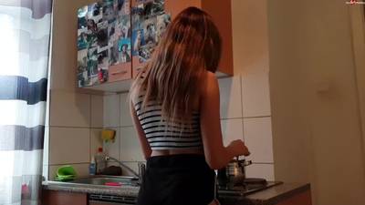 The lies on the table and enjoys a deep penetration into her pussyhole that needs filling completely