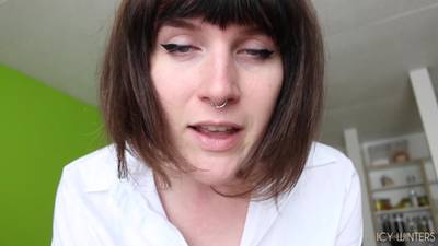 The brunette shakes her dick for us