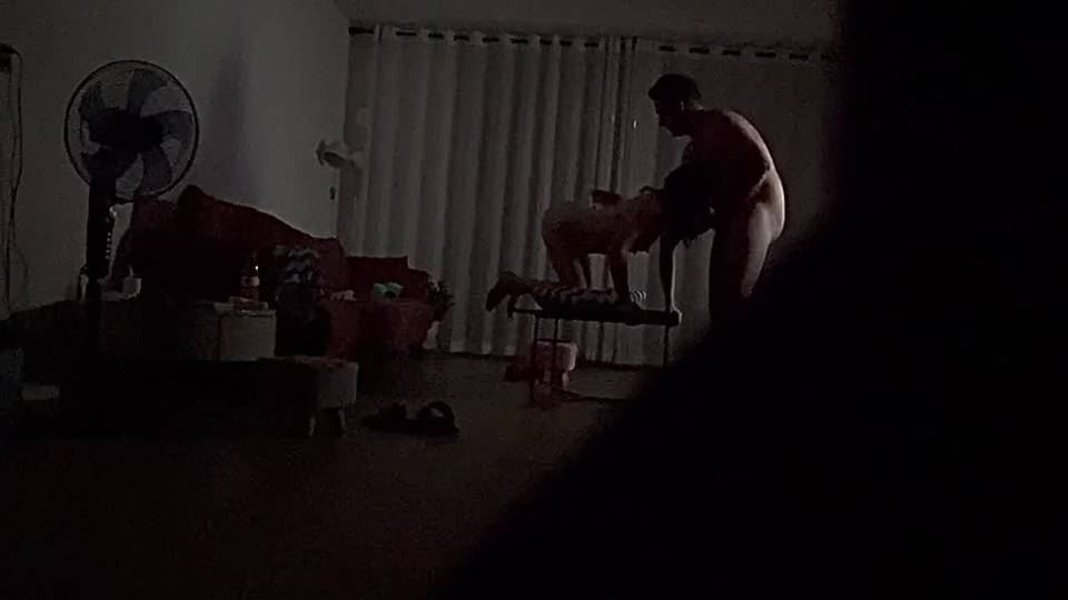 This Asian babe is on a table enjoying a good fuck in doggy style position. She helps with his boner by giving him a blowjob.