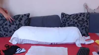 Beautiful naked woman, puts on a masturbation show in her bed. She loves to rub her wet pussy vigorously!