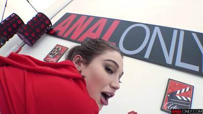 Brunette with big tits Lily Lou, has a very wide anus and this guy, is going to play with it, by spreading her ass even more with his dick shoved inside.