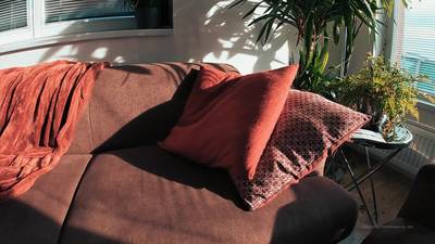 An amateur girl is sitting in an armchair, having just got out of the bath, holds a large dildo in her hand and fucks her shaved pussy.