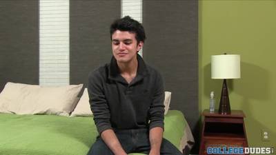 Cute brunette twink, Austin Fox gets naked in bed and strokes his fat cock until he cums all over his dick.