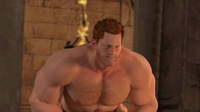 Two men make love in the middle of an old castle. One has got a big dick, that gets longer and longer!